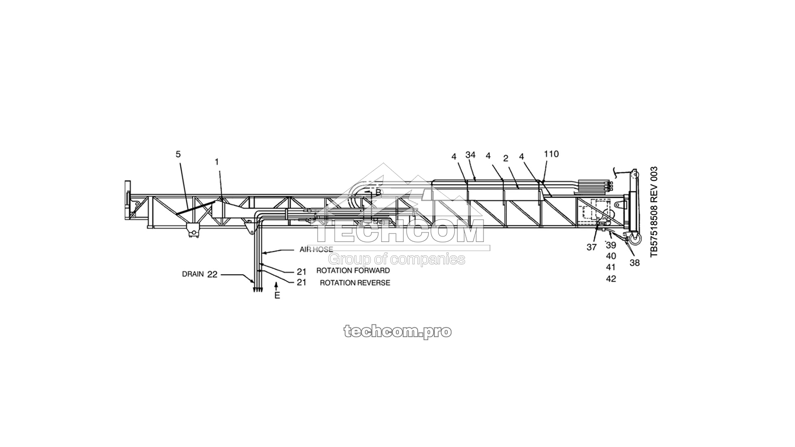 Configured for cold-weather service, the 57745663 (2657745663) package helps ensure dependable routing, restraint and protection of tower lines on 30-ft DM45/DM50 masts. TechCom supplies the complete set and genuine tower plumbing spares. View all spare parts for Epiroc DM45/DM50.