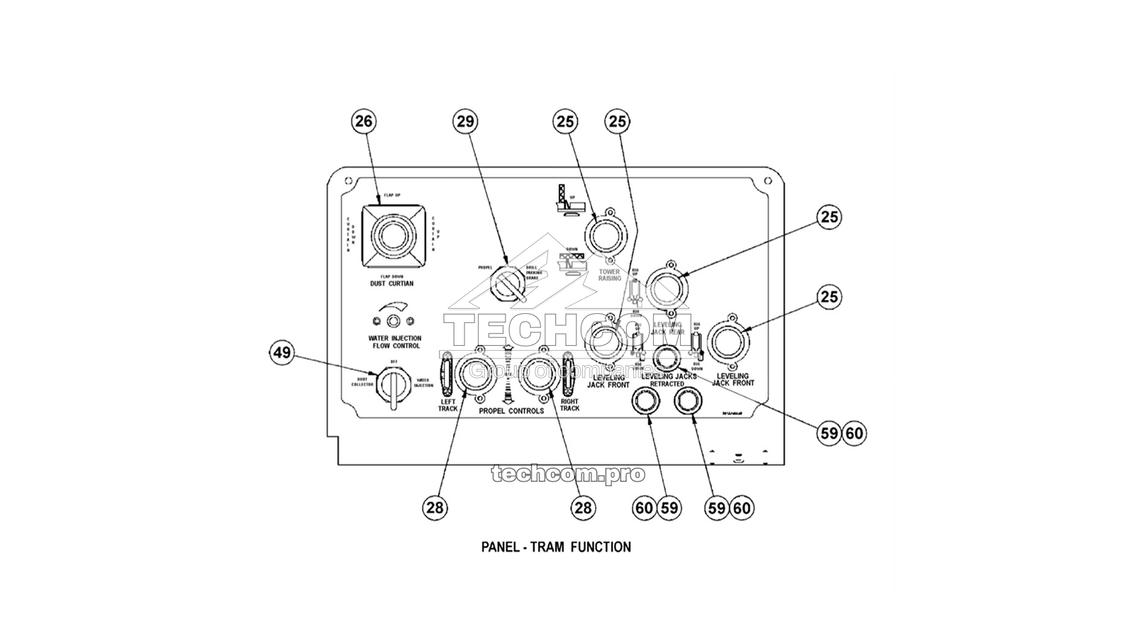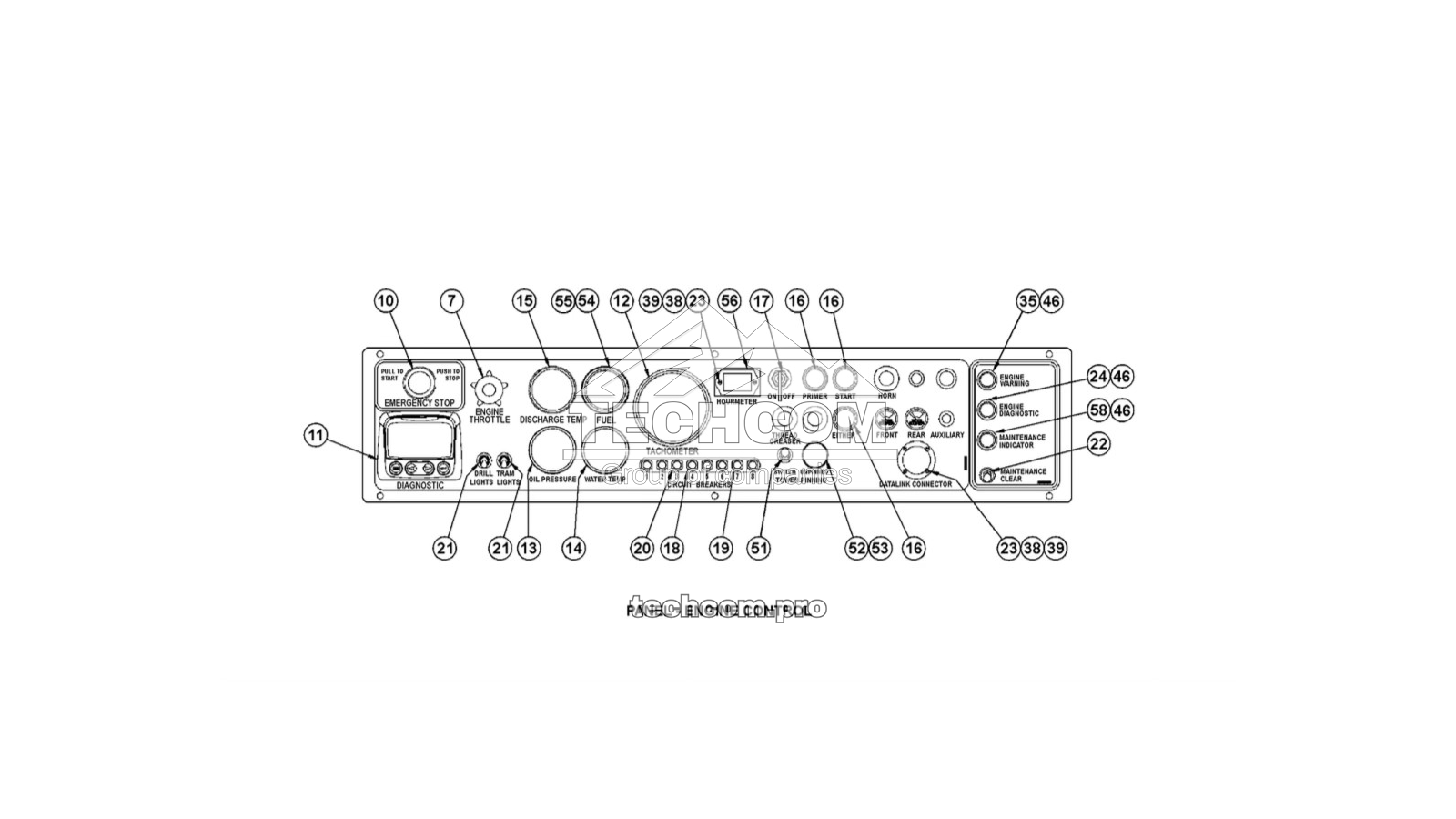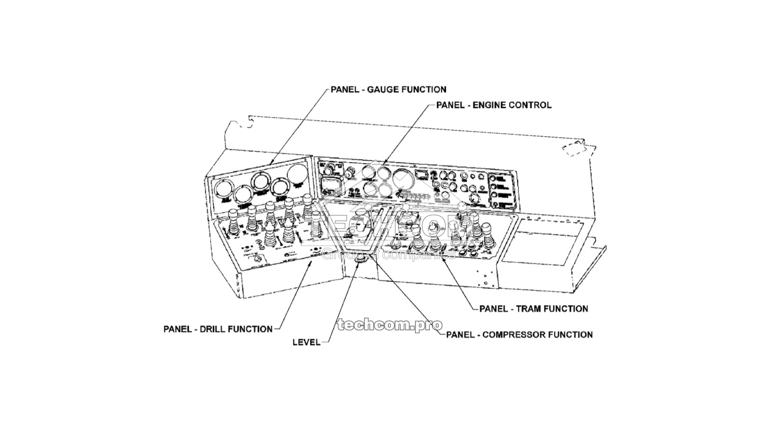 The 57829343 (2657829343) Gauges/Controls, LP, CAT assembly is part of the operator console on the Epiroc DM45/DM50 drill rig. It consolidates pressure indication, engine controls and electrical protection for reliable operation in mining conditions.
