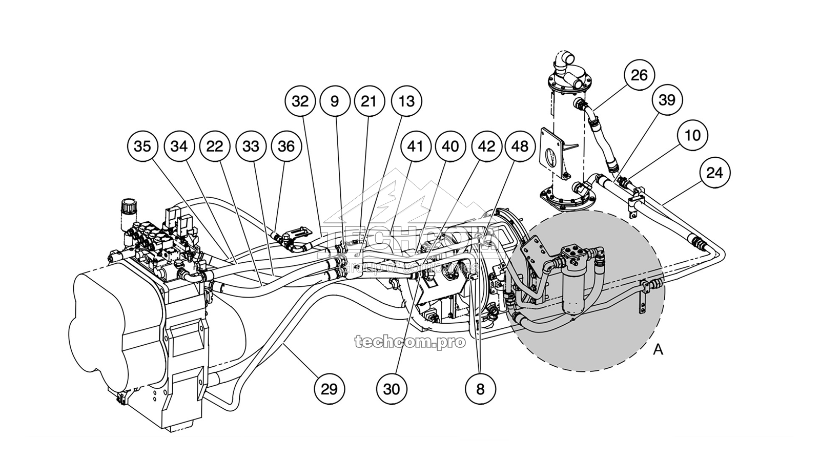TechCom provides a full catalogue of spare parts for the Sandvik Toro TH320, including hydraulic hoses, pipes, clamps, filters, adapters, and structural components. All parts meet OEM specifications and ensure long-lasting reliability in underground mining environments.