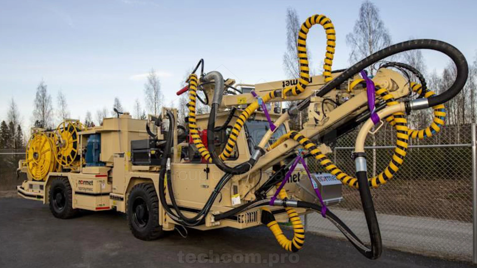 TechCom supplies spare parts for Spraymec MF 050 VC, including pumps, dosing systems, hydraulic components, and wear parts to ensure long-term reliability and precise performance in underground concrete spraying operations.