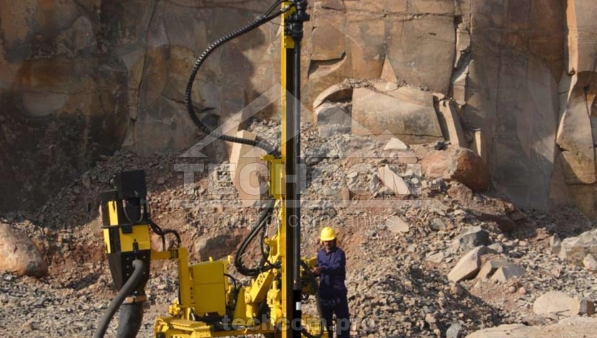 The ROC 203PC-TH from Epiroc (Atlas Copco) is a compact, air-powered surface rig designed for blast hole production, trenching, and consolidation work. It supports hole diameters from 48 to 76 mm and is equipped with the high-performance pneumatic rock tool BBC 120F — the most powerful in the Epiroc top-hammer range.