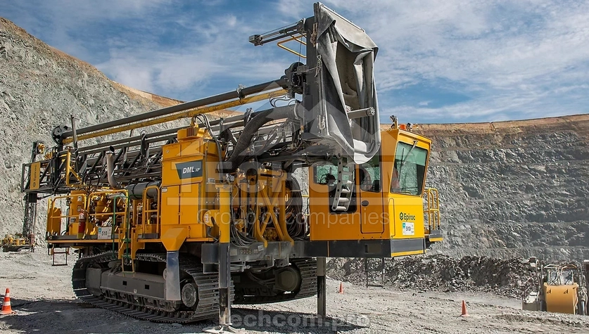 The Epiroc DML is a crawler-mounted, hydraulic tophead-drive blasthole drill engineered for multi-pass rotary tricone and down-the-hole drilling in open-pit mines. Covering a hole diameter range of 150–270 mm (5 7/8–10 5/8 in), it delivers a clean single-pass depth of 9.9 m (32.5 ft) and up to 62.5 m (205 ft) in multi-pass applications. A reinforced main frame, double-cut tower lacing and proven DM-series systems ensure high availability, low operating cost and long service life.