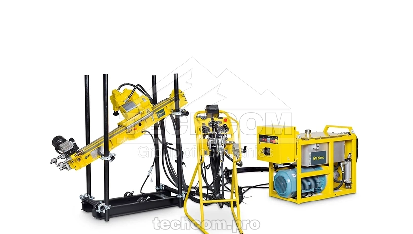 Установка оснащена запатентованным вращателем с гидропатроном, обеспечивающим надёжную фиксацию бурильной колонны, а также прочным штангодержателем с пружинным зажимом. Возможность работы с безопасными жидкостями HFC и отсутствие алюминиевых компонентов позволяют использовать установку в угольных шахтах. Управление всеми операциями осуществляется одним оператором с дистанционного пульта. В зависимости от условий доступен электрический или дизельный привод.